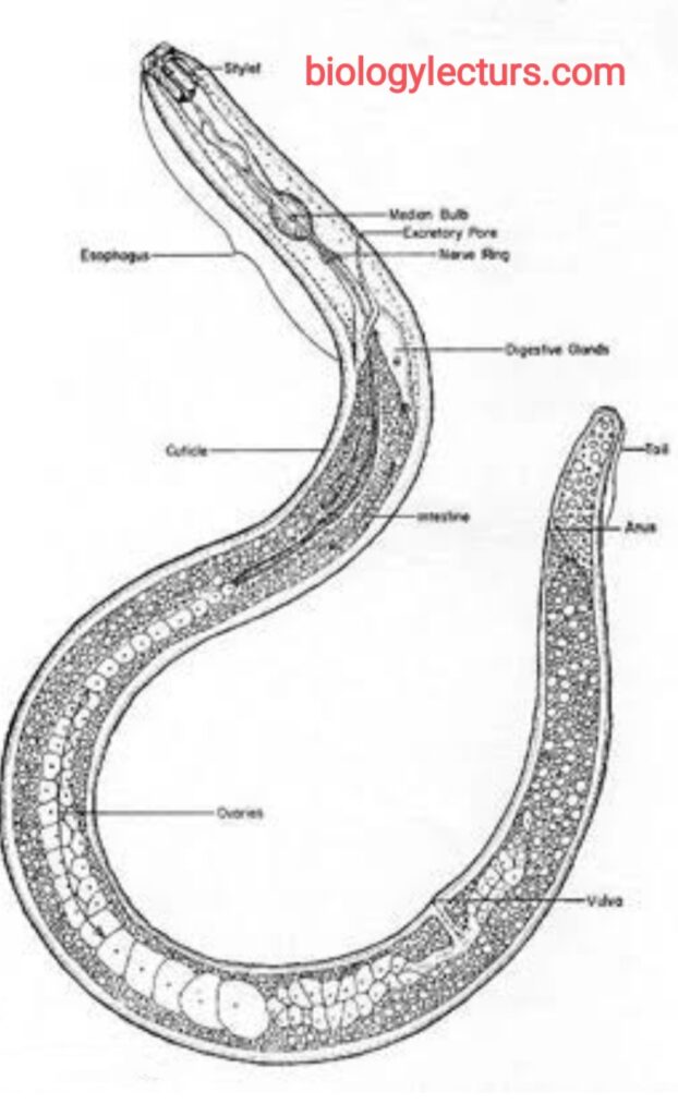उदाहरण – एस्केरिस (Ascaris) – गोल कृमि