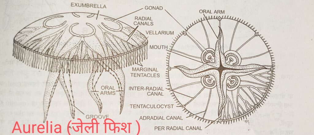 उदाहरण : 1- ऑरेलिया (Aurelia) : जेली फिश (Jelly Fish) |